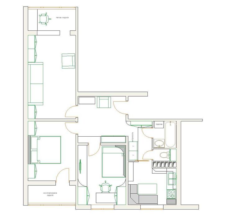 Велика кімната об'єднана з балконом на якому зручно організувати кабінет.