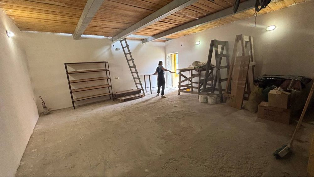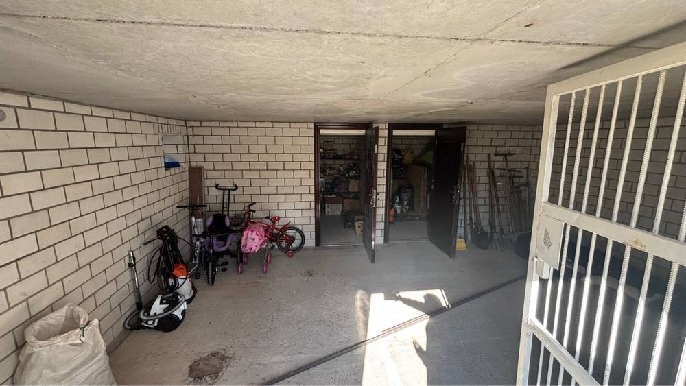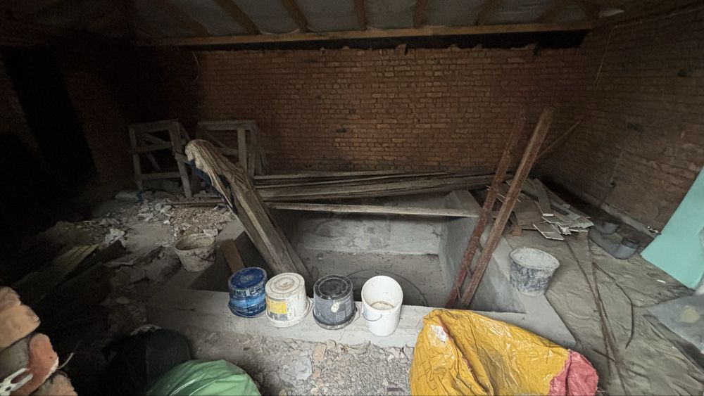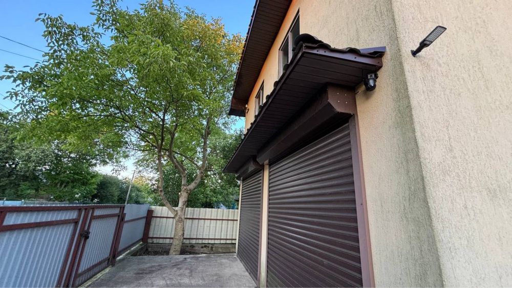 Будинок має два поверхи: на першому гараж на два авто з окремим входом, дві кімнати житловий стан, велика зала, дуже простора кухня та функціонуючий санвузол з ванною та бойлером (тепла вода в ванній та на кухні). Другий поверх вільного планування. Також під будинком є підвал з однією великою кімнатою та двома малими. Вся територія загороджена парканом з профлиста.