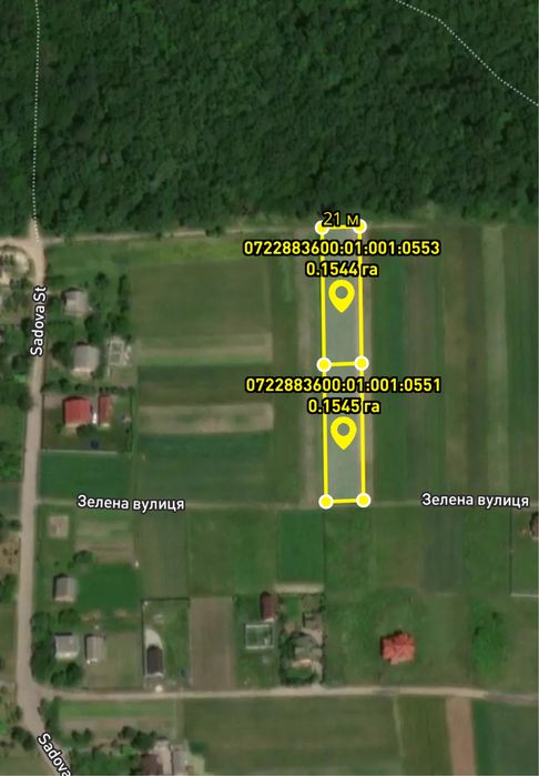 https://maps.app.goo.gl/cMhkTmtoRRtSLJeS9?g_st=ic; кадастровий номер: 0722883600:01:001:0551 0722883600:01:001:0553