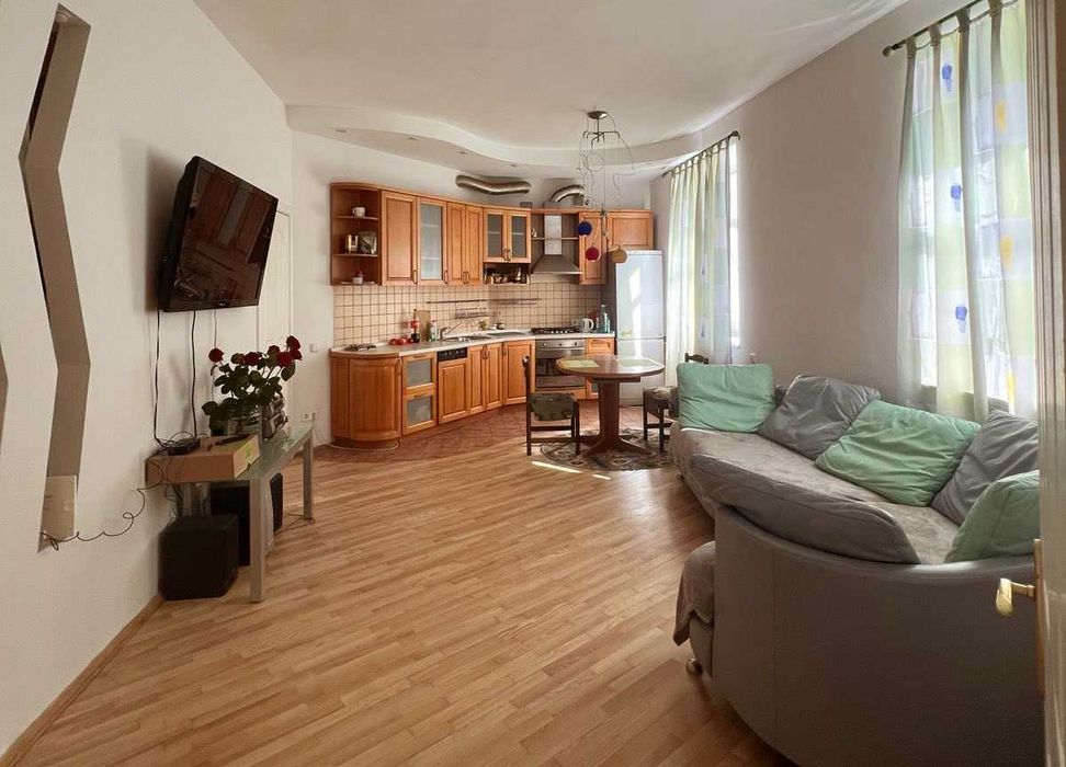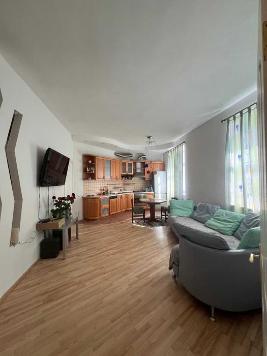 Загальна площа помешкання 66.5 кв.м. 26.9 кв.м. житлової площі. Площа кухні: 9 кв.м. Суміжний санвузол. У квартирі зроблено євроремонт. З балконом.