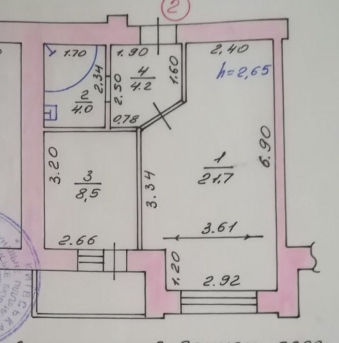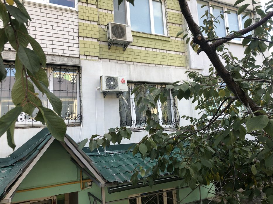 • Розташована на 1 поверсі цегляного будинку (знизу — цокольне приміщення).
