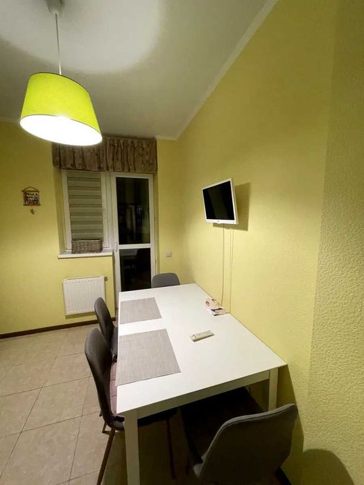 В квартирі двоспальний кутовий диван, кровать с ортопедичним матрасом, велика шафа, холодильник, пральна машина, бойлер, кондиціонер, варильна поверхня, духова шафа, телевізор, лічильники (опалення, вода, світло).