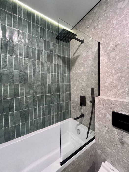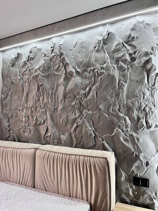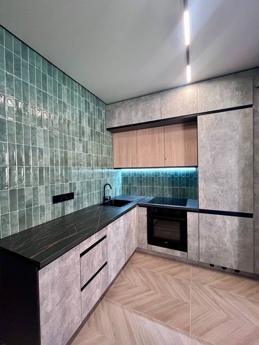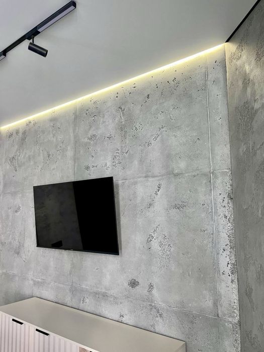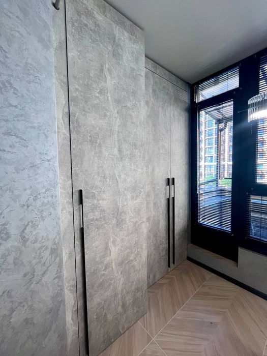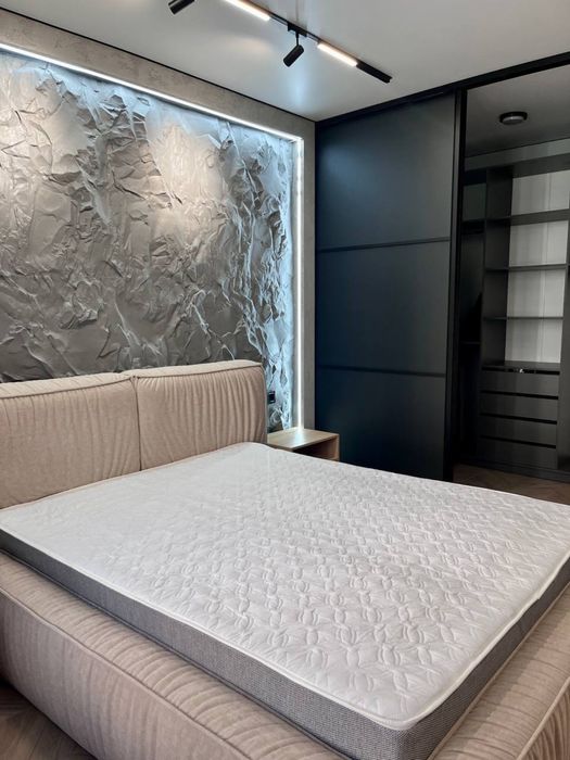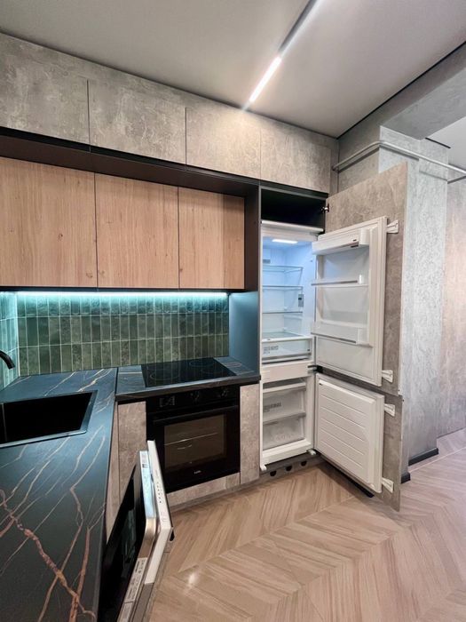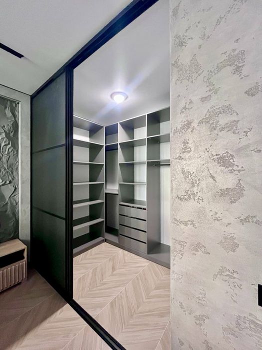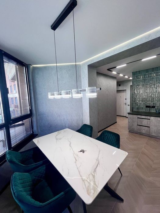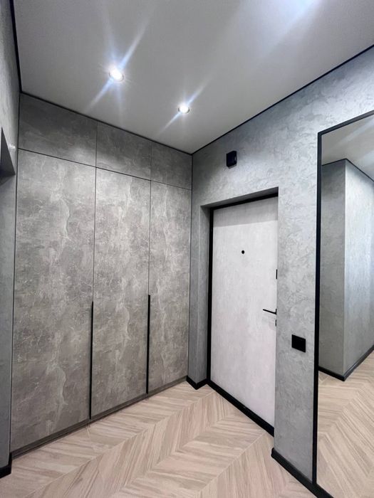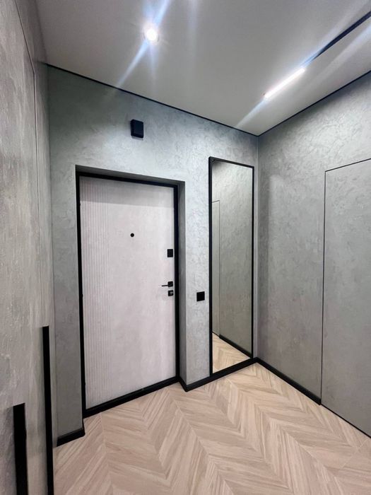 В квартирі виконаний сучасний, дорогий, дизайнерський ремонт. На стінах декоративна штукатурка - шовк, арт бетон, стильна імітація скелі в кімнаті, міжкімнатні двері прихованого монтажу, були змінені вхідні двері від забудовника, на підлозі керамограніт - ялинка. В ванній кімнаті сантехніка прихованого монтажу.
