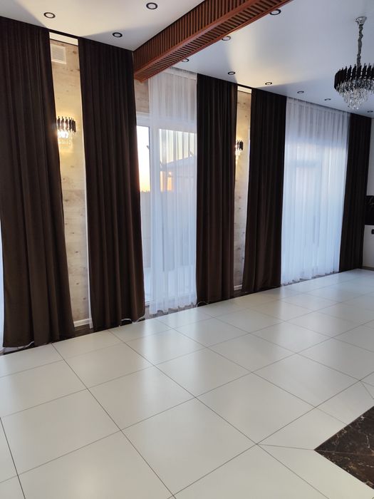 спальні - 14,5 м2, 14,5 м2, 12,8 м2, гардеробна - 10,5 м2, більярдна - 10,5 мг, кабінет - 17 м2, баня - 13 м2, котельня - 8 м2, технічне приміщення - 13 м2, тераса - 48 мг, кухня студія, дві ванних кімнати, два сан. вузли, пральна кімната. По всьому будинку тепла водяна підлога. Встановлено відеоспостереження, інтернет,