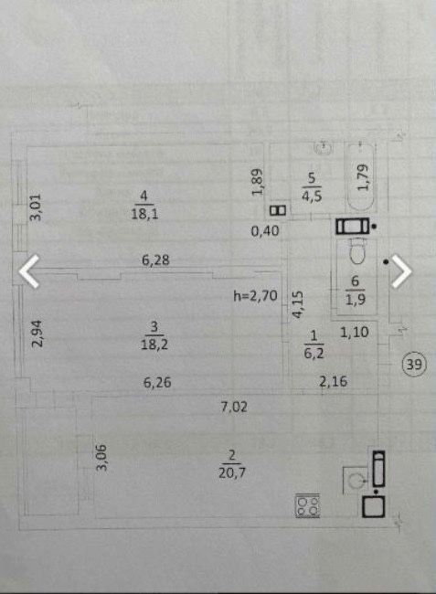 • 2 окремі кімнати — 18,2 м² та 18,1 м²