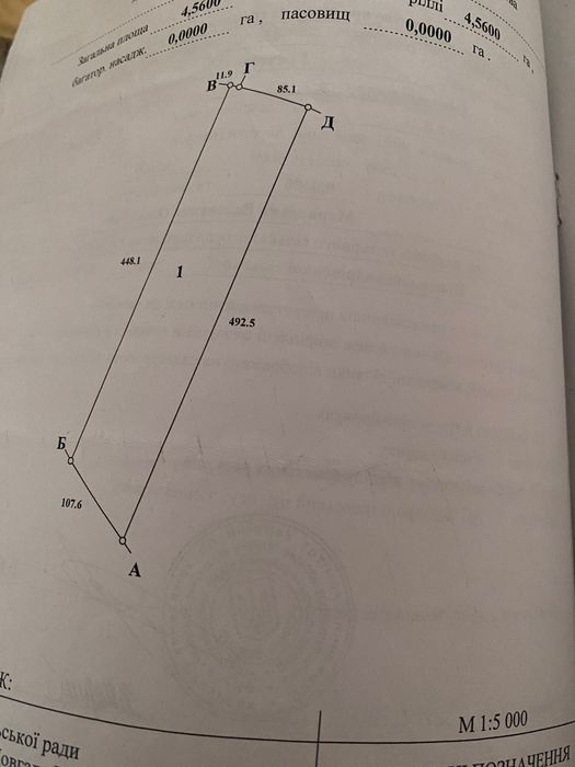 Площа: 4,56 га. Ціна 1500 $ за гектар. торг є.