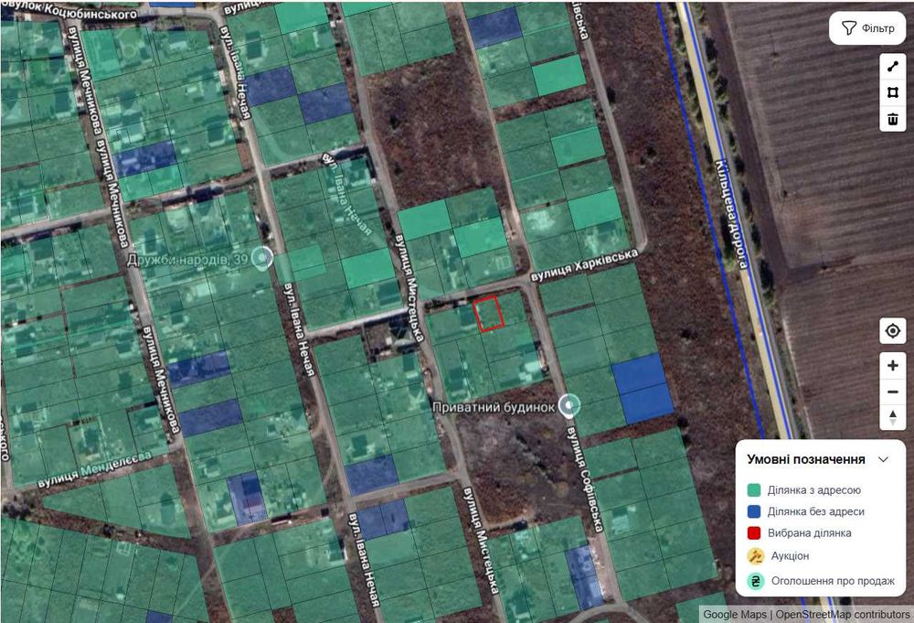 Цільове призначення: під будівництво житлового будинку, господарських будівель та споруд.