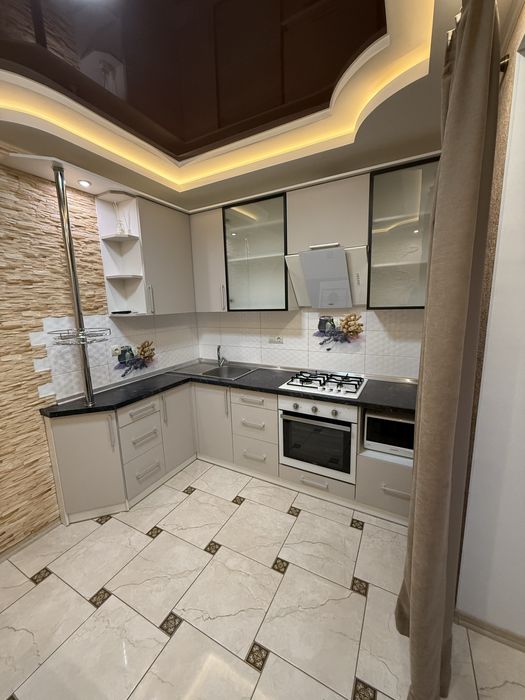 Укомплектована необхідною технікою та меблями. Поруч із будинком знаходяться супермаркети, салони краси, розвинена інфраструктура. Тихий двір, чистий під'їзд та приємні сусіди.