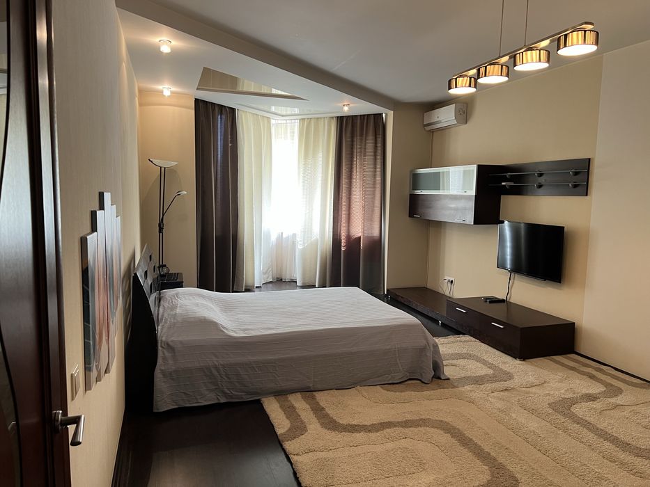 Шевченківський; Оренда 1-кімн 56 кв м Салютна 1б без комісіі; Оренда 1-кімн простора світла квартира на 9 поверсі 9-ти поверхового будинку 56 кв м за адресою: Салютна 1б без комісіі. Охорона на територіі. Поряд Мегамаркет, Сільпо, кінотеатр, ринок, кафе та ресторани, вікна у двір на Парк