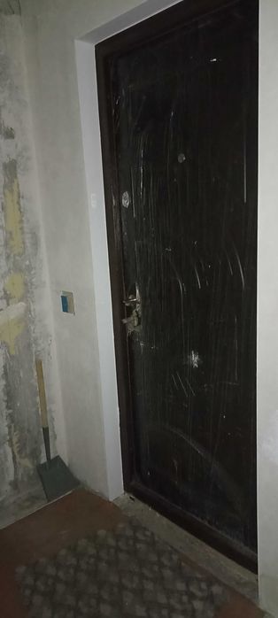 Под стеночкой стоят: новые двери, которые не установлены; мебельные щиты смеси.