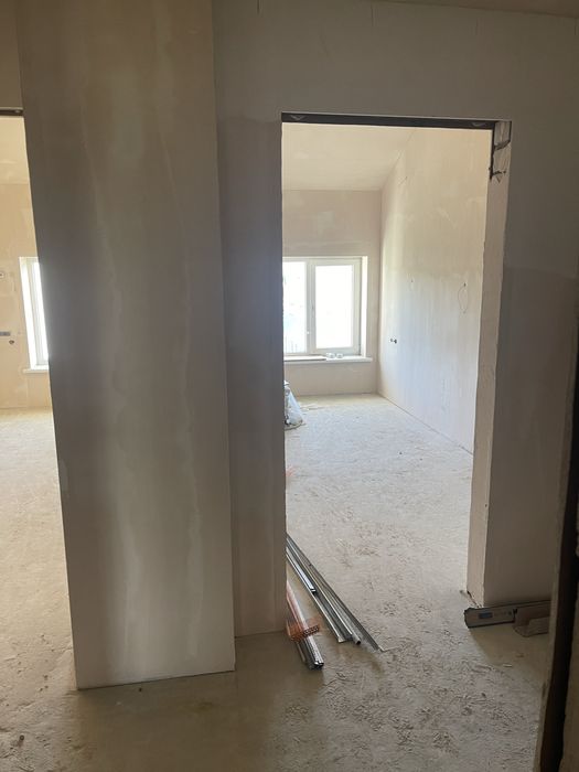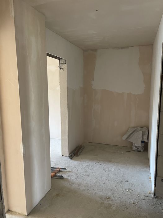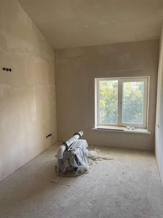 В квартире выполнена разводка электрики, стены оштукатурены
