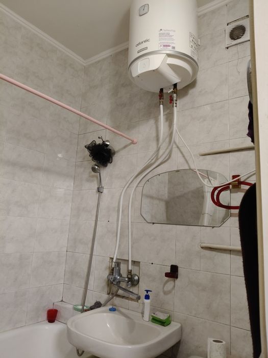 З меблів у квартирі лише те, що на фото. Лічильники на світло, газ та воду. Є бойлер, нещодавно встановлений. Плита газова. Мікрохвильова, кондиціонер, холодильник та пральна машинка.