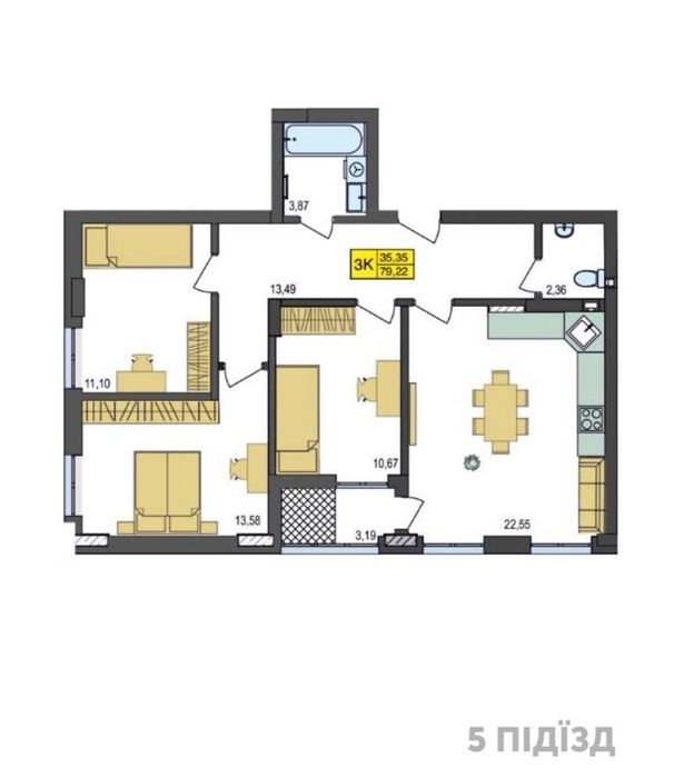 - Квартира, знаходиться в 5-тому підїзді, в якому на даний момент продані майже усі квартири.