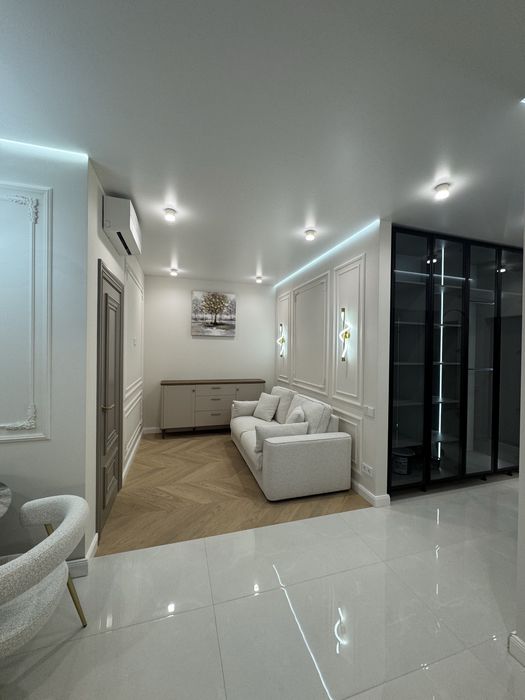 Приморський; Продам свою квартиру Кадор Сити; Кадор 66 жемчужина!Предлагается к продаже эксклюзивная однокомнатная квартира площадью 44 м², расположенная вблизи центра города, на 19 этаже, с ощущением простора и приватности. Интерьер выполнен в изысканном стиле французской классики: благородная цветовая палитра, элегантные линии и внимание к каждой детали.