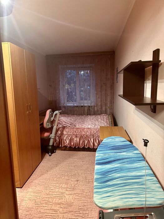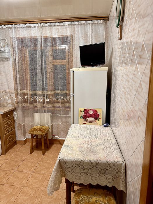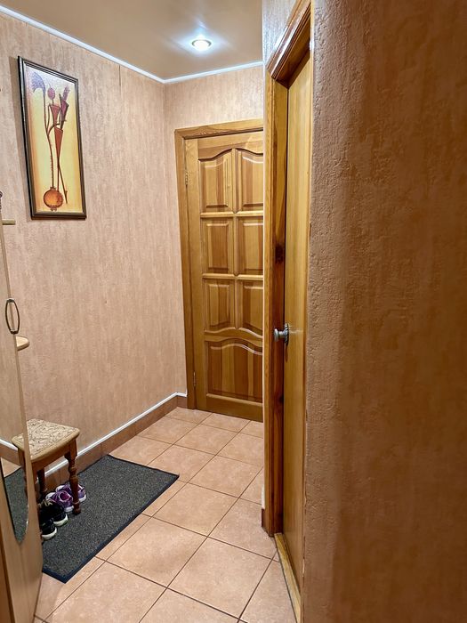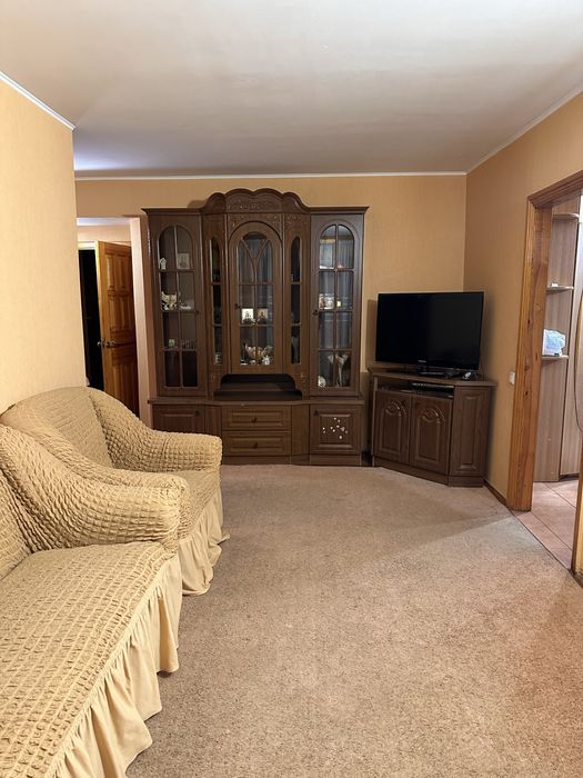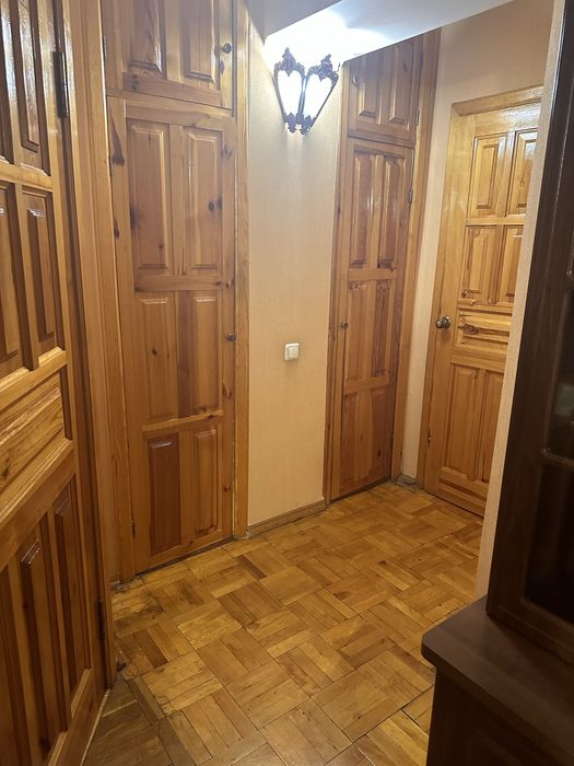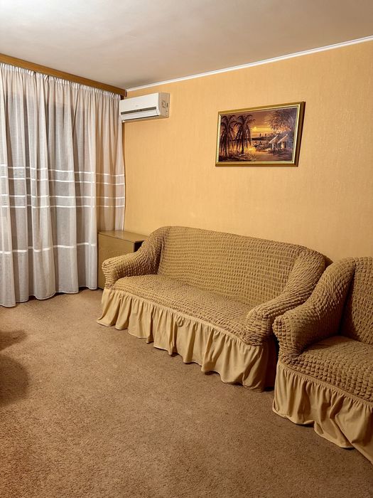 В залі диван (розкладний ) . Дві кімнати з двоспальними кроватями, шафами купе ,в одній стіл та ортопедичний стілець . Є дві комори для зберігання . Вікна виходять у двір де завжди тихо.