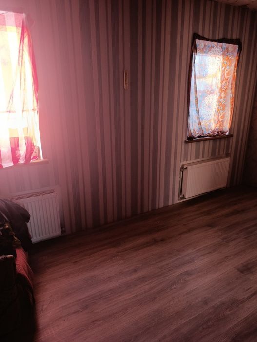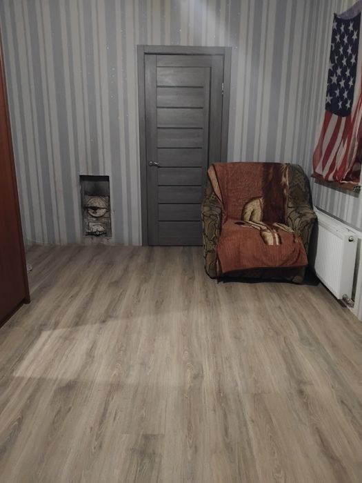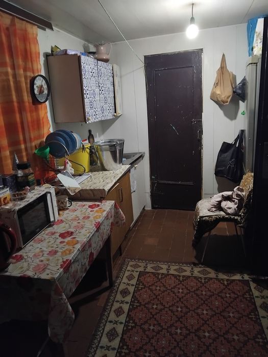 Чотири кімнати, одна з них прохідна. Маємо грубку на 3 кімнати.