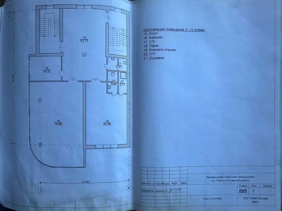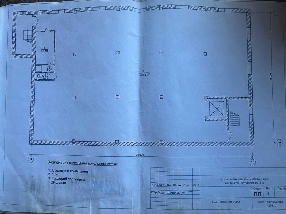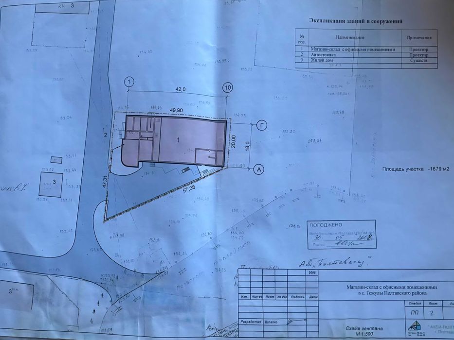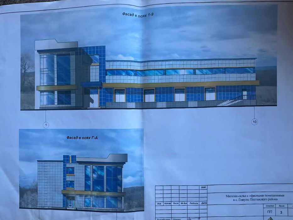Разом з ділянкою (входить в ціну) комплект проектно-кошторисна документація "Магазин-склад з офісними приміщеннями"
