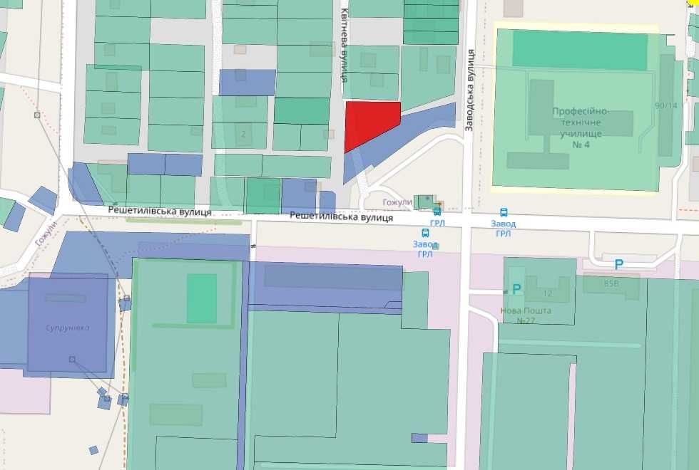 Продаж земельної ділянки комерційного призначення м. Полтава; Земельна ділянка 0.1679 га, Полтавська ОТГ, с. Гожули, зупинка громадського транспорту "ГРЛ" м. Полтава
