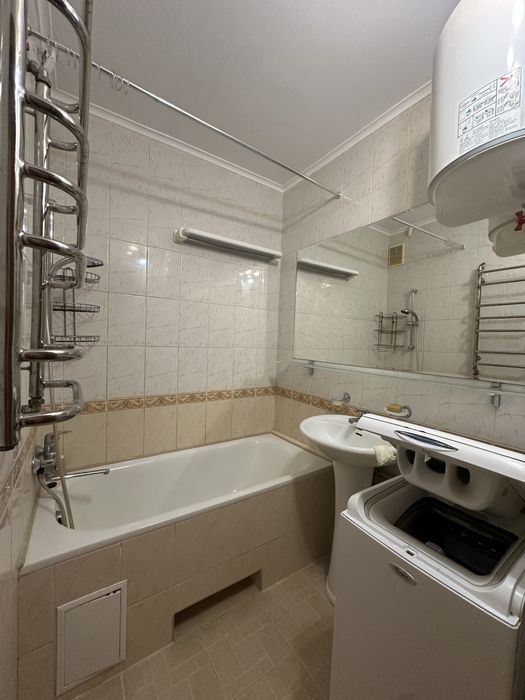 У квартирі домофон з відео, пральна машина, мікрохвильовка, холодильник, гаряча вода централізована, але є також бойлер, 2 кондиціонера, велика шафа-купе при вході та спальні