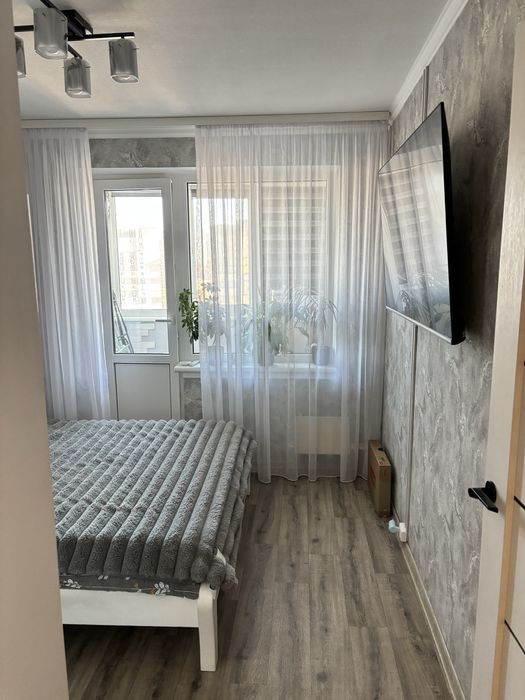 Святошинський; Квартира 2х кімнатна вул. Вахтанга Кікабідзе 15а; Власник. Продається 2х кімнатна квартира у Святошинському районі на вул. Вахтанга Кікабідзе 15а. 14 поверх. Сучасний ремонт зроблений під себе у 2020 р. Пластикові вікна, бойлер, духовка, варильна поверхня, кондиціонер, стіралка, все залишається. Гарні сусіди.
