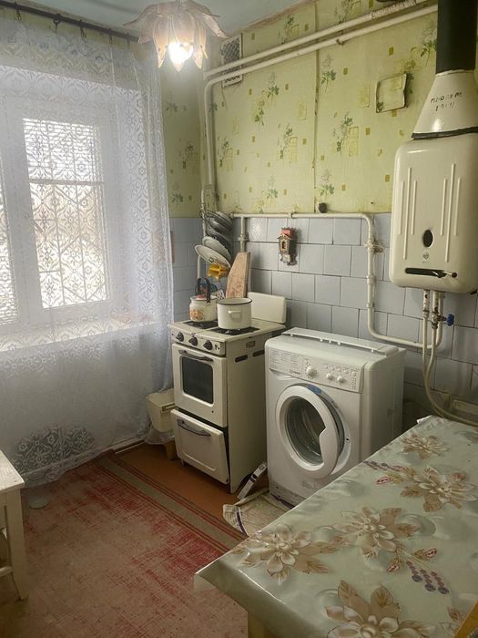 Є конвектор, пральна машина, колонка для гарячої води.