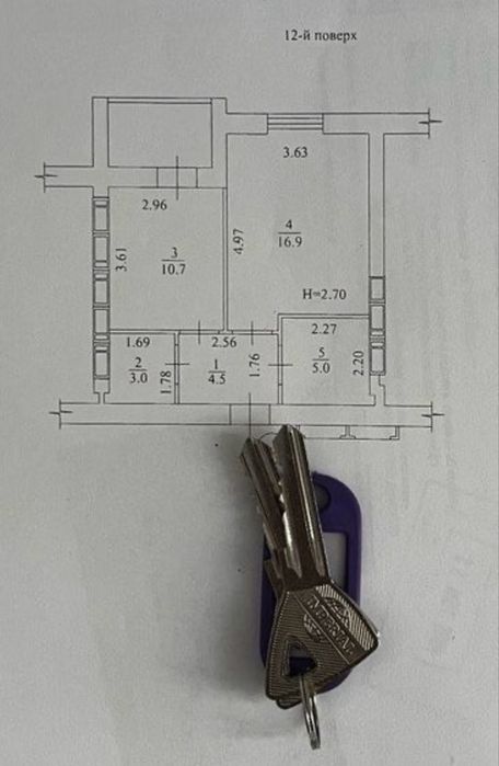 Загальна площа квартири – 43,9 м2. Висота 2,7 м.