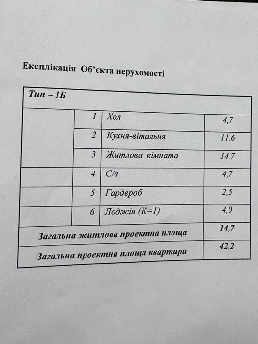 • загальна — 42,2 м²