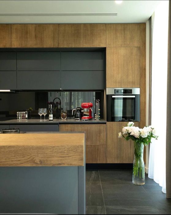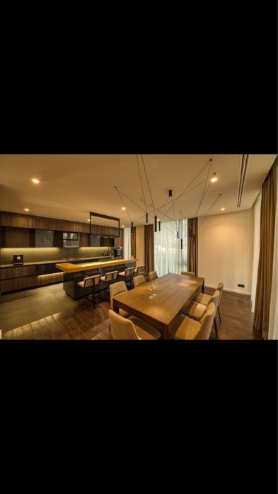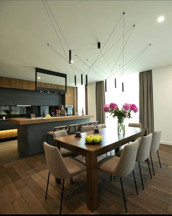 Кухня-вітальня з каміном, що додає затишку, та виходом на терасу. В просторій кухні достатньо місця для всієї родини;