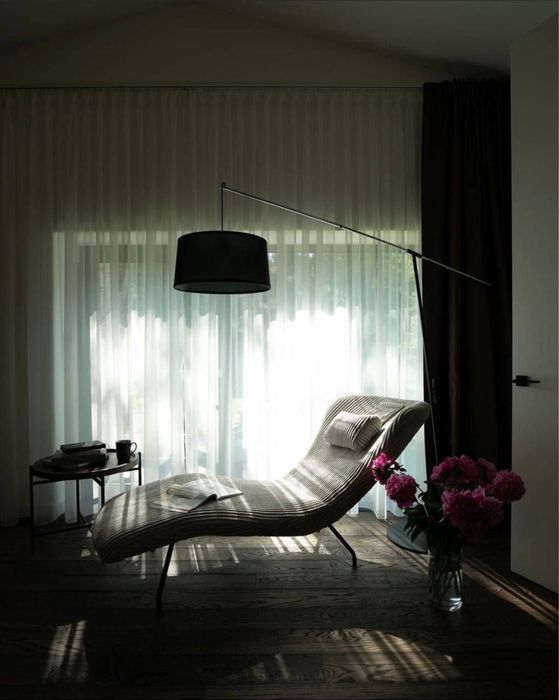 Основна спальня має вихід на власну терасу з видом на мальовничий сад і соснові дерева.