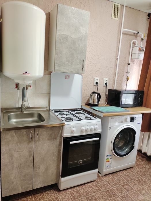 В квартире есть все необходимое для комфортного проживания :кровать(с ортопедическим матрасом), фен,стиральная машинка , телевизор, гладильная доска,утюг