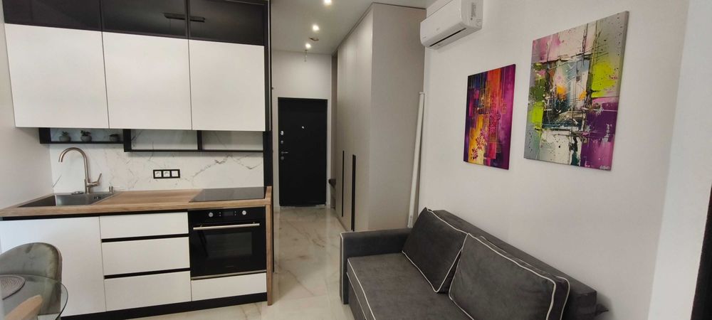 До моря — 10 минут пешком. Идеально как для жизни, так и под дорогую аренду. Квартира готова к сделке. Площадь 34 кв.м. Переуступка!