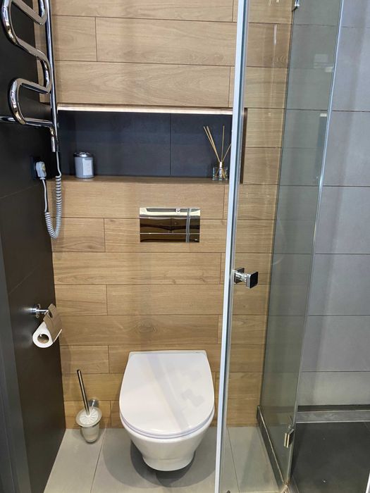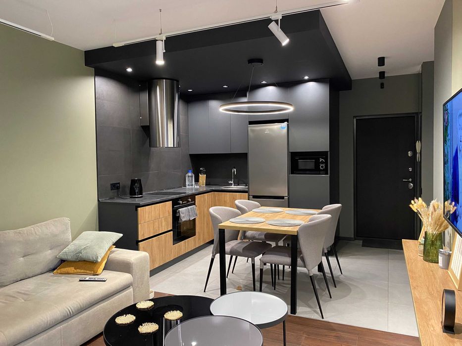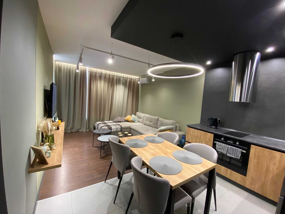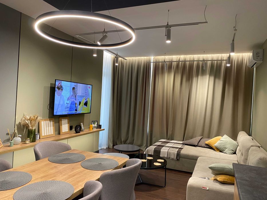 Квартира з гарним ремонтом, із зручним зонуванням: окрема зручна обідня зона, просторе місце для відпочинку у вітальні, робоче місце із вже встановленим столом. Можливо підключити зарядну станцію.
