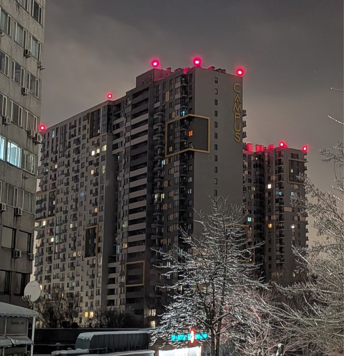 Будинок підключено до автономного електропостачання, є інвертор та генератор. Працюють ліфти, світло, вода, власна котельня. Будинок відключень світла не відчуває.