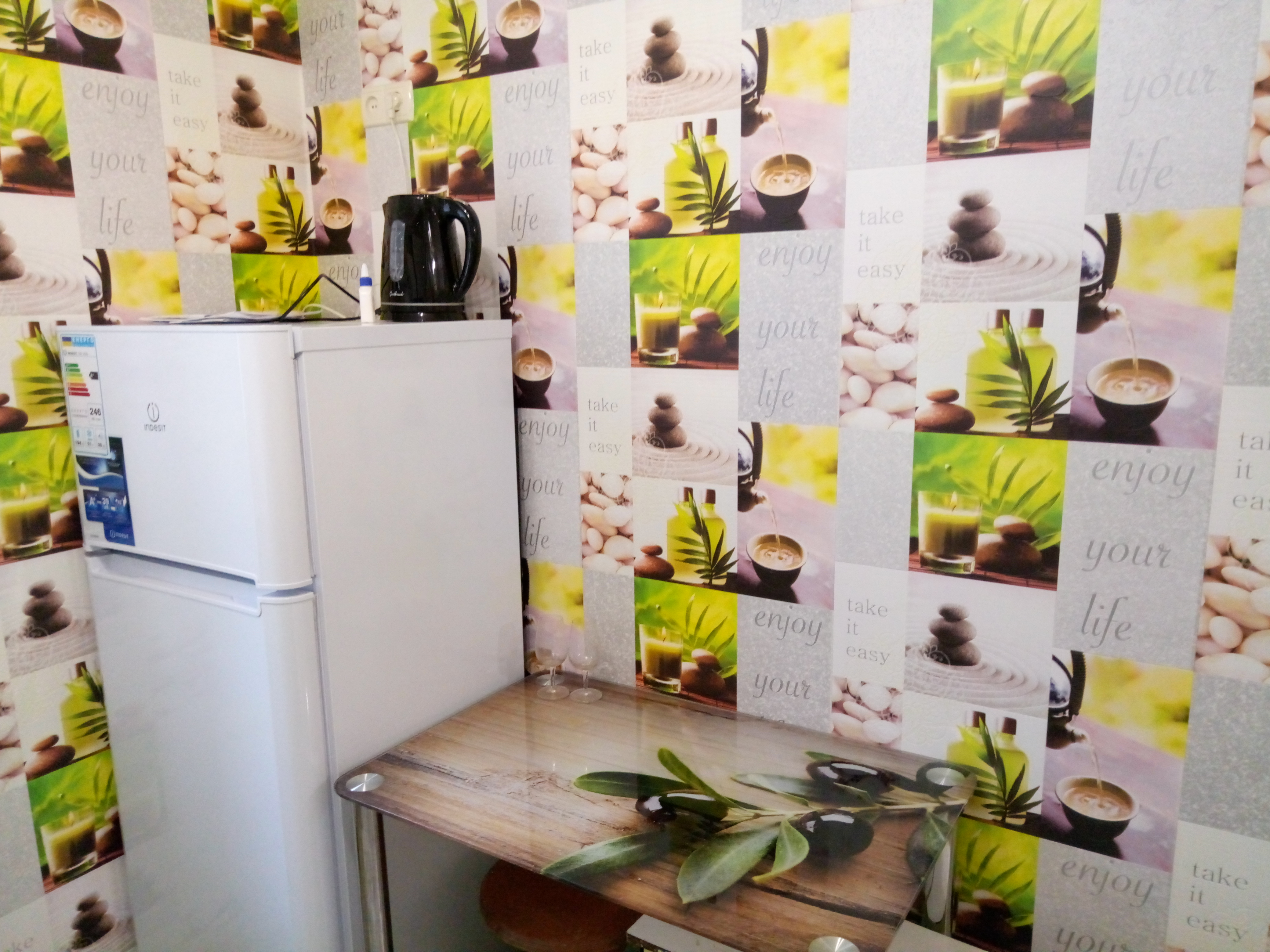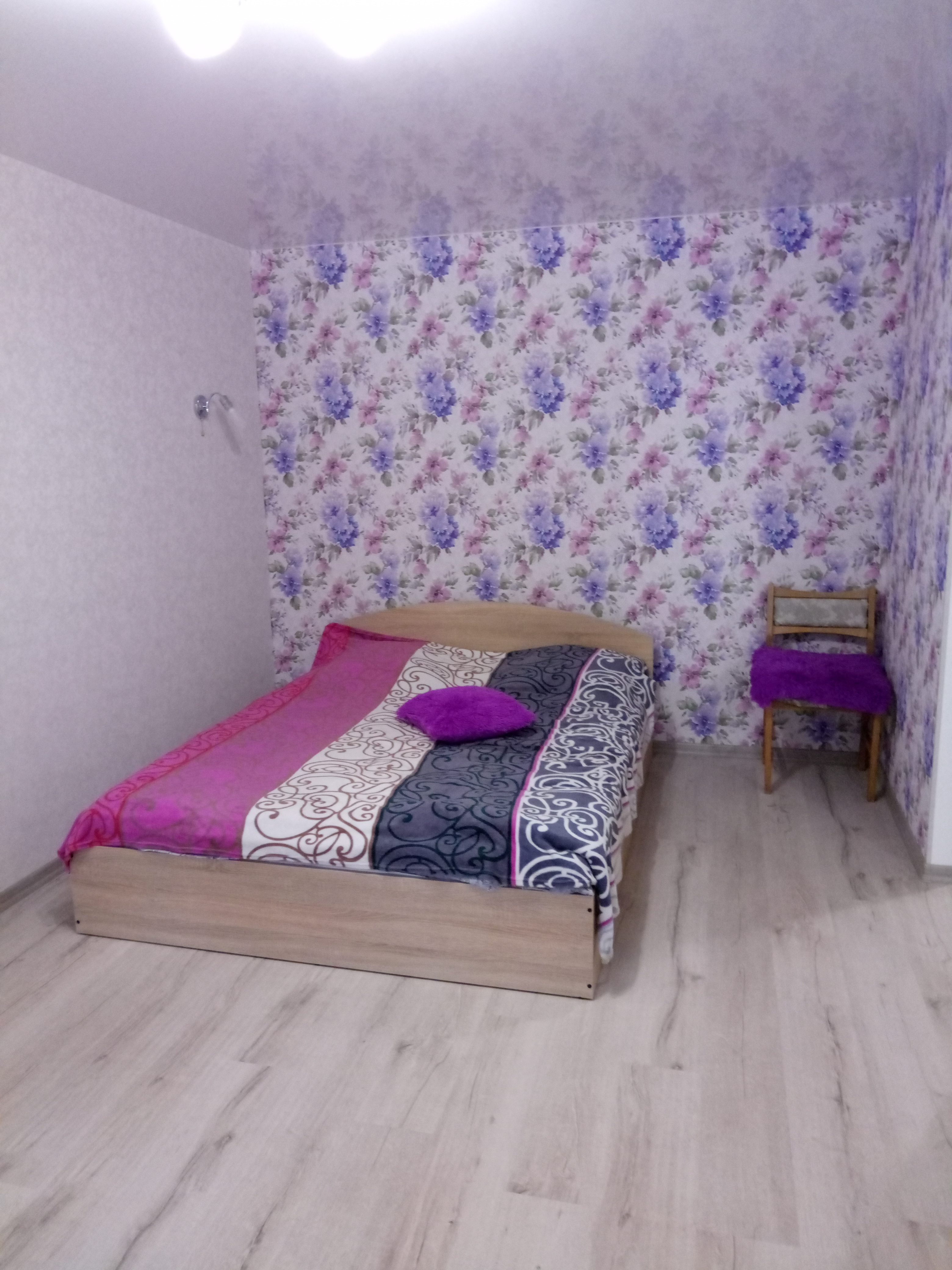 В комнате стоит большая двуспальная кровать,раскладное кресло для ребенка застеленная новым постельным бельем, подушки, одеяло, плед. Есть комод для вещей, установлен кондиционер, плазменный телевизор , Wifi. Балкон расширен, застеклен. Санузел современно облицован,т\ванная. Горячая вода постоянно. На кухне вся необходимая для быта посуда и техника,включая новую микроволновую печь, плиту и холодильник, и электрочайник.