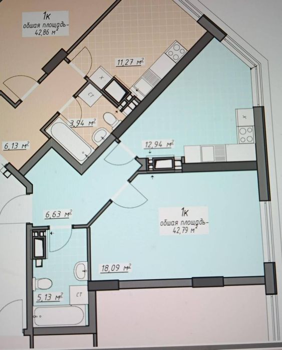 Общая площадь 42,2кв.м.