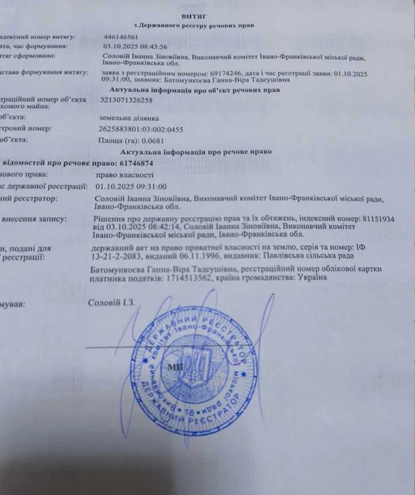 продам землю Івано-Франківська область Тисменицький район село Павлівка