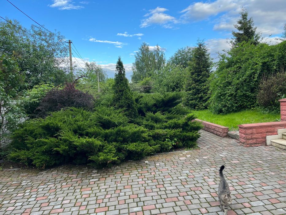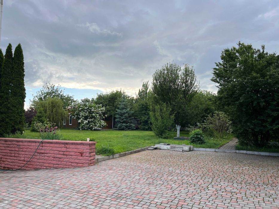 Будинок обжитий, теплий. На подвір'ї багато зелених насаджень, бруківка, літній дерев'яний будиночок з терасою.