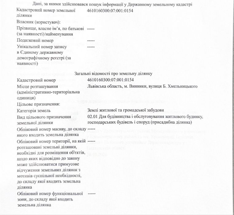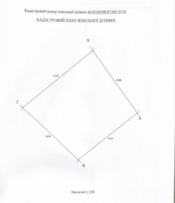 Кадастровий номер 4610160300:07:001:0154