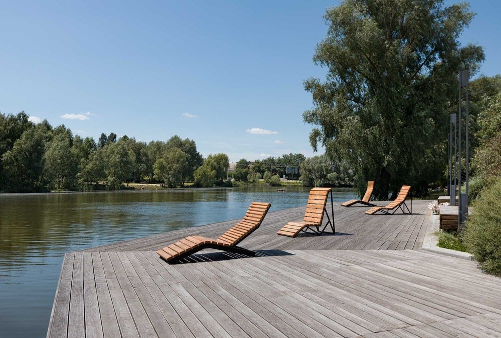 - пятиповерховий будинок на березі озера;