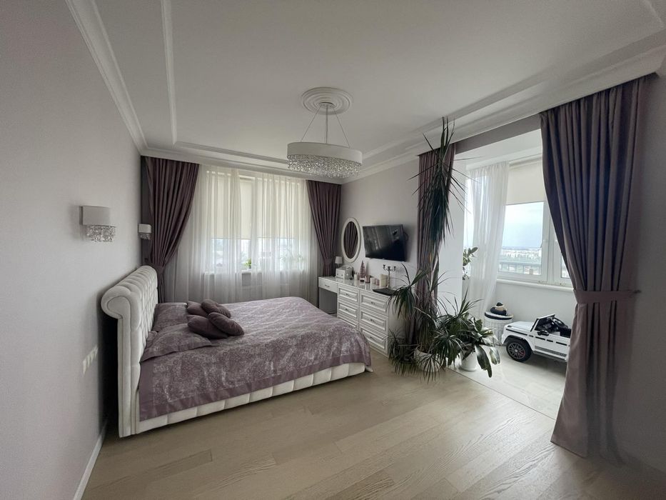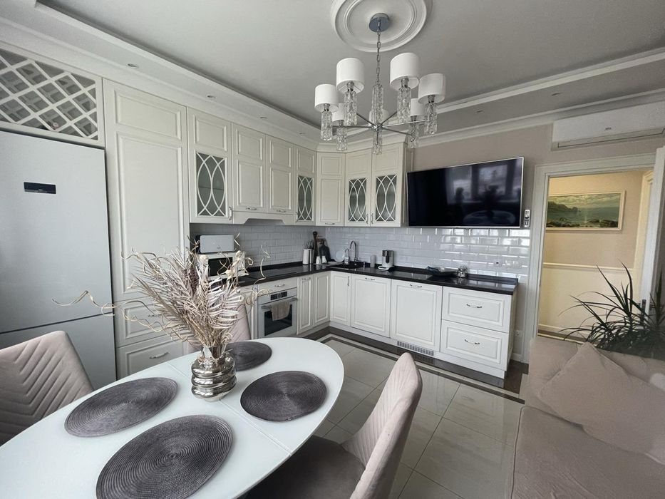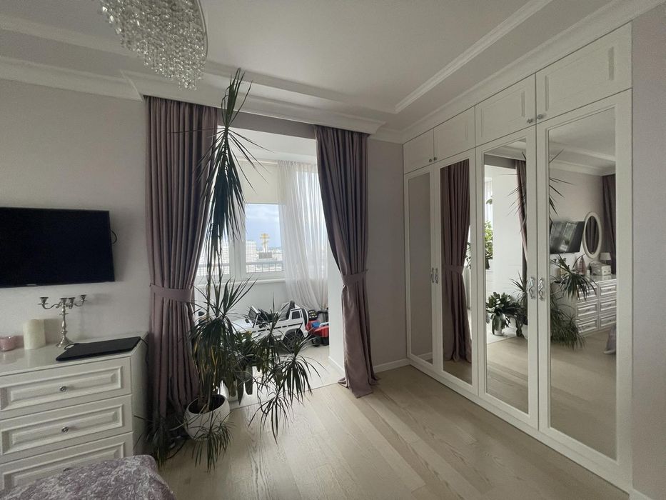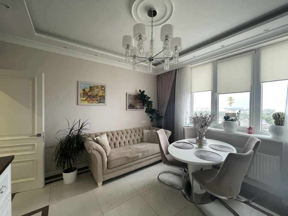 Хаджибейський; Продам 2 комнатную квартиру ЖК Апельсин Среднефонтанская 74кв; Продается уютная двухкомнатная квартира площадью 74 квадратных метра, расположенная на 22 этаже по адресу Среднефонтанская. В квартире выполнен дорогой ремонт. Планировка включает кухню-студию, спальню, детскую и гардеробную. Установлена бытовая техника Bosch и кондиционеры. Есть кладовка на этаже.