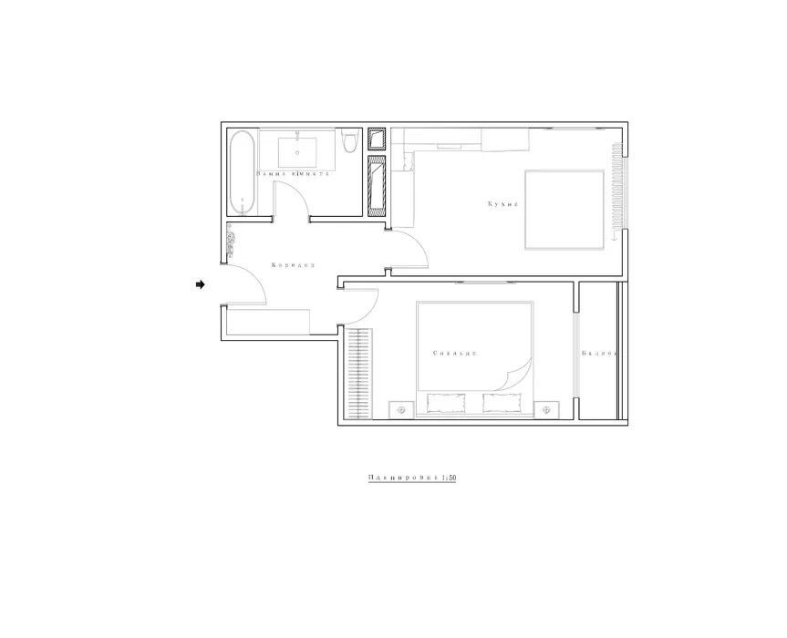 Квартира на 7 поверсі з просторою кухнею 16,5 м2, суміжним санвузлом та спальня кімната площею 14.5 м2 з виходом на лоджію.