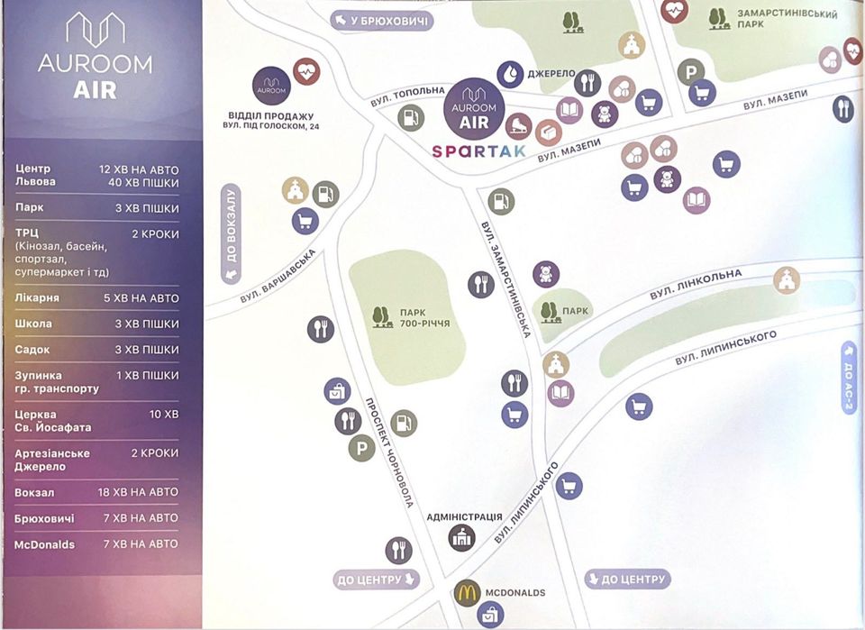 В ТРЦ Spartak можна вийти навіть в тапочках,одразу біля виходу з будинку розташоване джерело, на автівці в центр кілька хвилин,а поряд безліч парків.