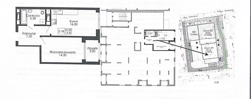 Загальна площа: 45.3м2