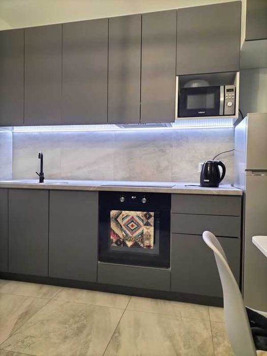 Житлова площа 26 кв.м, розташована на 3-му поверсі чотириповерхового будинку. У квартирі є все необхідне для комфортного проживання: кондиціонер, холодильник, варильна поверхня, духова шафа, мікрохвильова піч, чайник, бойлер, телевізор, повний набір меблів, велика шафа, комод, тумбочка та розкладний диван. Передбачене індивідуальне електроопалення, тепла підлога та велика керамічна батарея. Закрита територія з охороною гарантує безпеку.