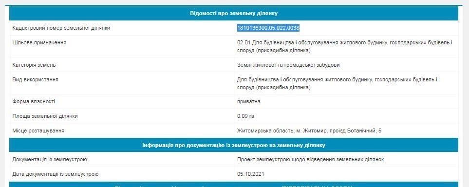 | Земельна ділянка: |