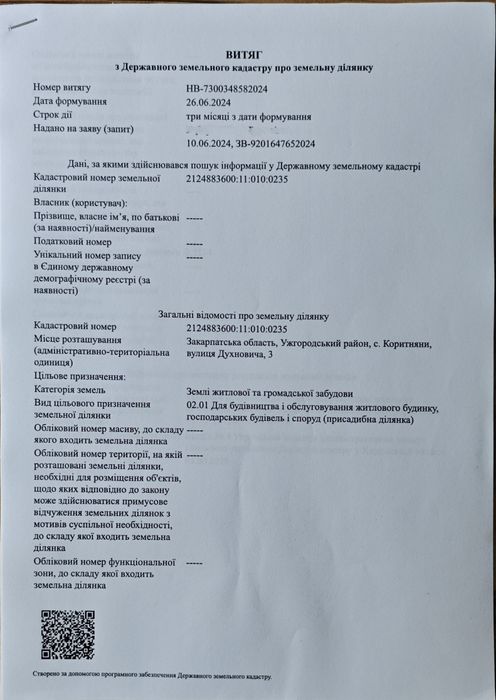 | Земельна ділянка: |