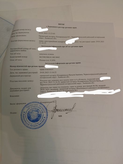 | Земельна ділянка: |