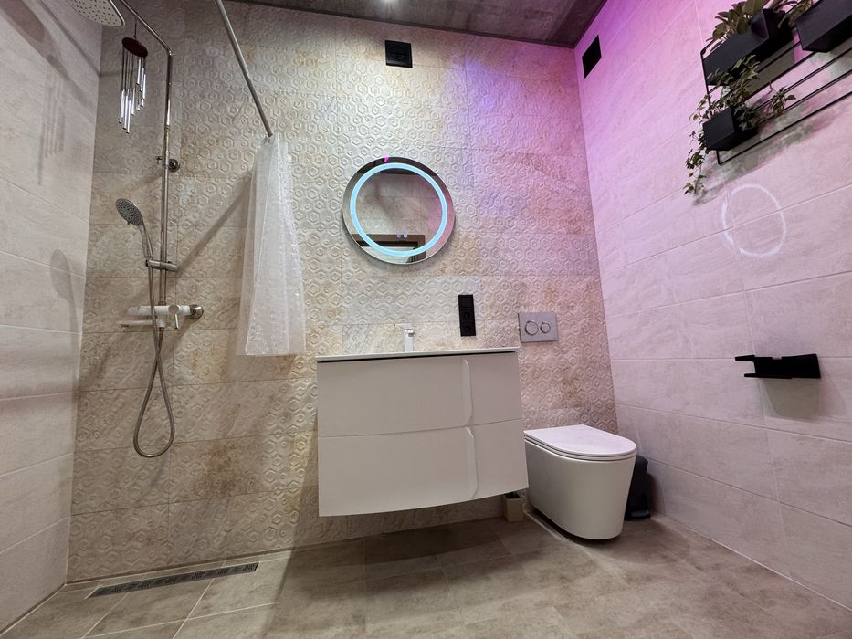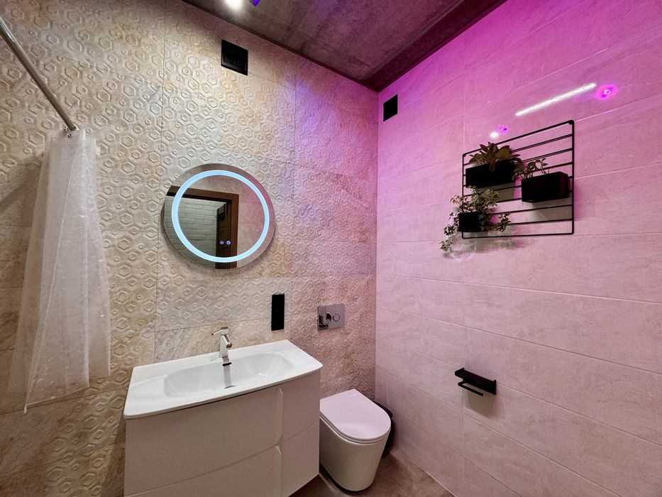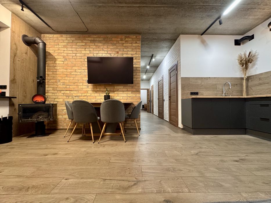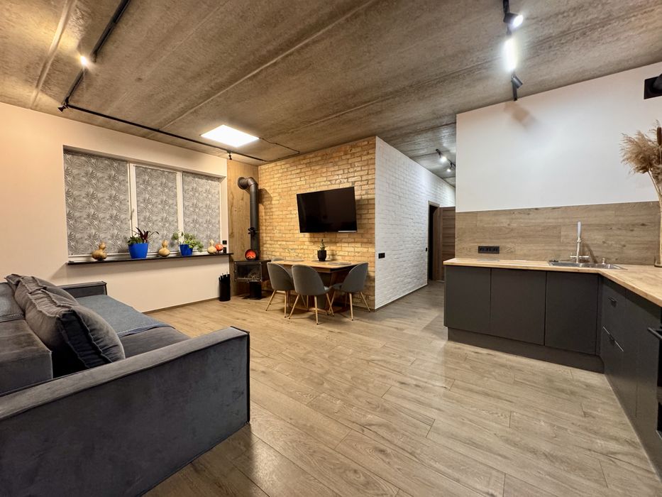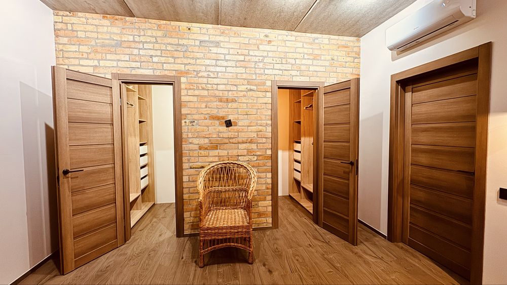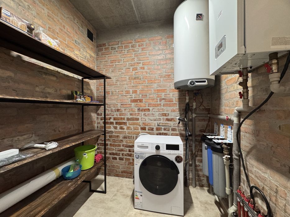 Можна одразу заїжджати та жити. На другому поверсі — дві окремі спальні кімнати, світлі й затишні, простора кухня студія з вбудованою технікою та каміном, 2 окремі гардеробні кімнати в спальні, 2 санвузли, бойлерна /пральна, кімната зберігання речей під сходами, балкон, експлуатований дах 100м.кв., нові меблі.
