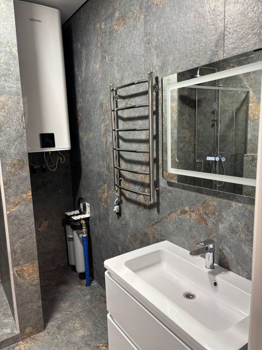 В будинку артезіанська вода + свої фільтри в квартирі, каналізація київська. Велика кухня- вітальня, 2 спальні, 2 ванні кімнати, гардеробна кімната з вікном, 2 лоджії, вікна в пол,вся побутова техніка вбудована. Поруч з будинком крите паркомісце з можливістю встановлення власної зарядки для електромобіля. Своя газова міні котельня для комплекса з генератором (під час вимкнення світла, опалення працює). Поруч все необхідне: АТБ, Фора, дитячий садок, школа, річка Десна, до Києва 15 км.
