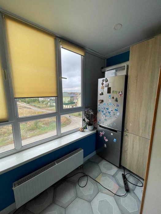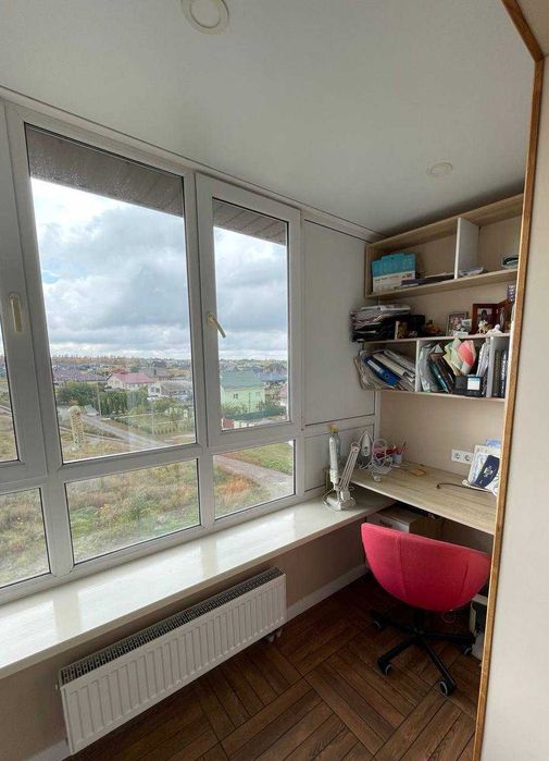 Лоджія дуже світла, з 3камерними склопакетами, (в ній розташовані тумби, мікрохвильова піч, фірмові кавоварка та кавомолка), шкаф, який закриває двохконтурний газовий котел.